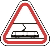 Ce panneau prévient le conducteur de la traversée d’une voie de tramway. Il est généralement implanté 50m avant le passage de la ligne, les tramways circulant principalement en agglomération.